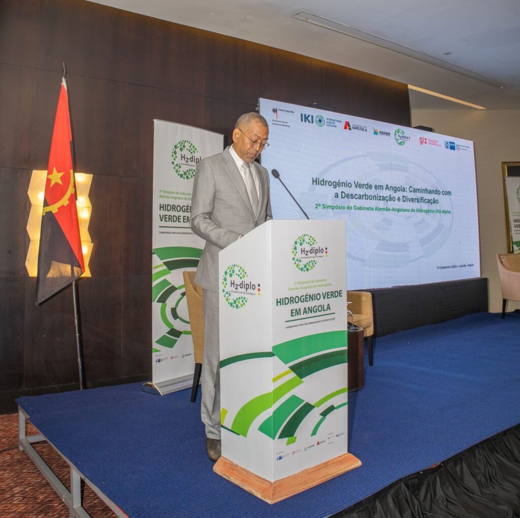 O Gabinete Alemão-Angolano de Hidrogénio (H2-diplo – Decarbonization Diplomacy) e a Associação Angolana de Energias Renováveis, em cooperação com a Embaixada da Alemanha e o Governo Angolano facilitou o 2º simpósio sobre Hidrogénio Verde em Angola, com foco em “Rumo à Descarbonização e Diversificação”, na qual contou com a presença das Vossas Excelências  Eng. Diamantino Azevedo Ministro de Petróleo e Gás, Eng. José Barroso Secretário de Estado para o Petróleo e Gás e Eng. Arlindo Bota Manuel Carlos, Secretário do Estado para a Energia, membros do governo e entidades privadas.